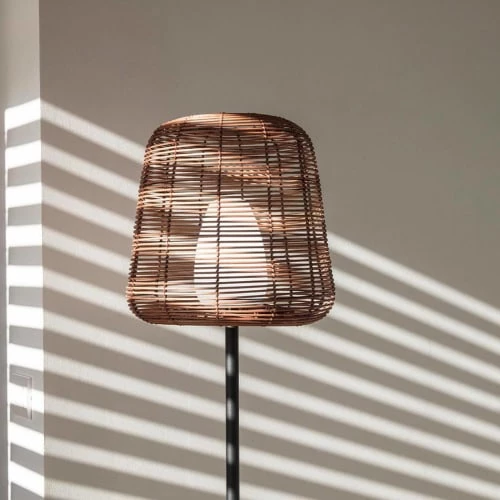A la fois luminaire et objet déco, ce lampadaire filaire illuminera votre décoration et rendra votre intérieur ou votre extérieur plus accueillant. Il pourra trouver sa place dans un salon, une chambre, une entrée ou sur une terrasse. On aime son design épuré qui se compose d’un pied en acier et d’un abat-jour en polyrotin. Cette matière apporte un côté bohème très actuel. La structure ajourée de l’abat-jour laisse passer la lumière pour créer un beau jeu d’ombres lorsque la lampe est allumée. Résistant aux éclaboussures et aux UV, ce lampadaire peut être utilisé sans risque à l’extérieur pour éclairer toutes vos soirées dans votre jardin.
