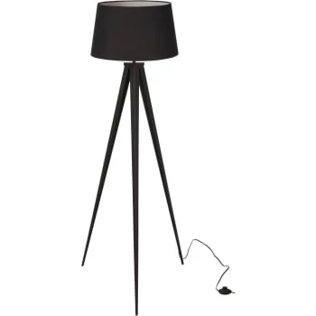 Maisons Du Monde Lampadaires Lampadaire En Bois Noir, Gris Et Beige, Abat-jour En Lin H154