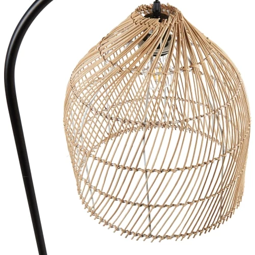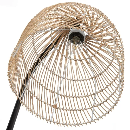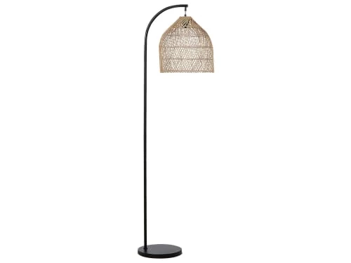 Maisons Du Monde Lampadaires Lampadaire En Bois Noir, Gris Et Beige, Abat-jour En Lin H154