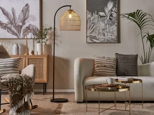 Maisons Du Monde Lampadaires Lampadaire En Métal Doré Et Abat-jour En Coton Bleu Nuit Recyclé H155