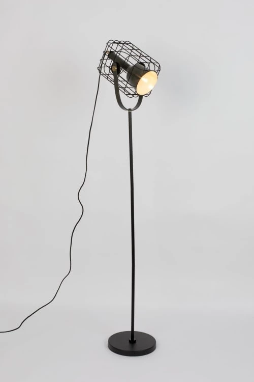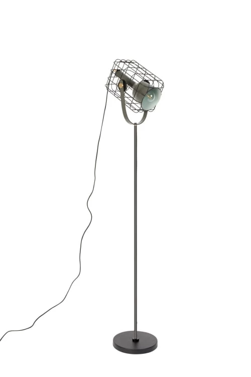 Maisons Du Monde Lampadaires Lampadaire En Bois Noir, Gris Et Beige, Abat-jour En Lin H154