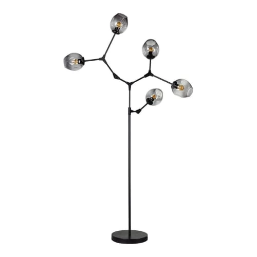Maisons Du Monde Lampadaires Lampadaire En Bois Noir, Gris Et Beige, Abat-jour En Lin H154