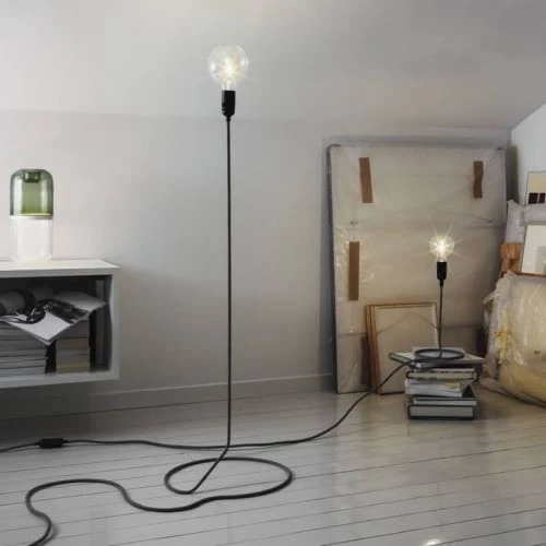 Maisons Du Monde Lampadaires Lampadaire En Bois Noir, Gris Et Beige, Abat-jour En Lin H154