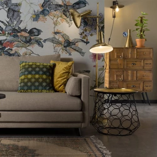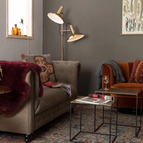 Maisons Du Monde Lampadaires Lampadaire En Bois Noir, Gris Et Beige, Abat-jour En Lin H154