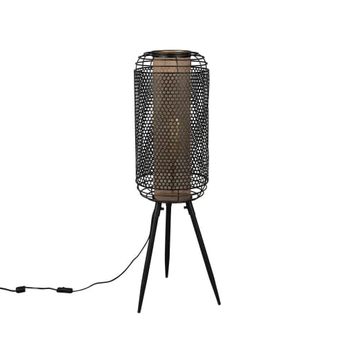 Maisons Du Monde Lampadaires Lampadaire En Bois Noir, Gris Et Beige, Abat-jour En Lin H154