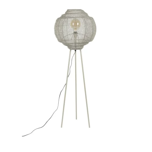 Maisons Du Monde Lampadaires Lampadaire En Métal Doré Et Abat-jour En Coton Bleu Nuit Recyclé H155