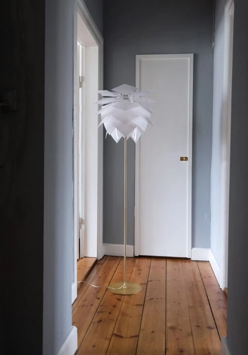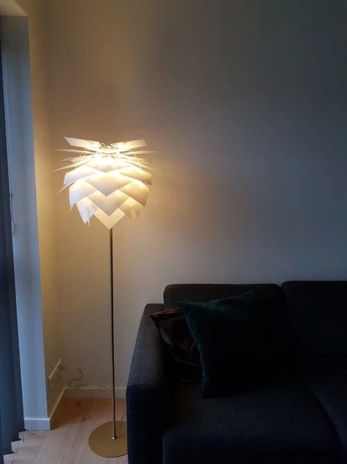 Maisons Du Monde Lampadaires Lampadaire En Métal Doré Et Abat-jour En Coton Bleu Nuit Recyclé H155