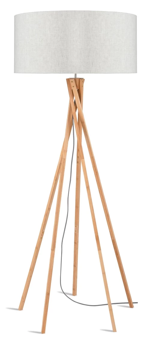 Maisons Du Monde Lampadaires Lampadaire En Tiges De Rotin Et Abat-jour En Lin Blanc H140