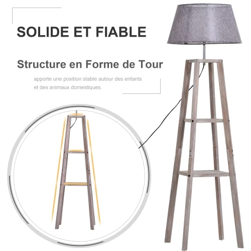 – Pieds en bois lampadaire en lin gris, lui donnant une décoration élégante et rétro
