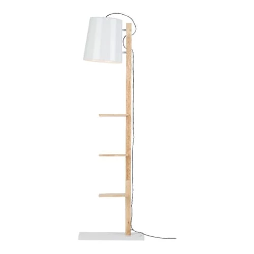 Maisons Du Monde Lampadaires Lampadaire En Bois De Manguier Et Abat-jour En Lin Et Rotin Beige H166