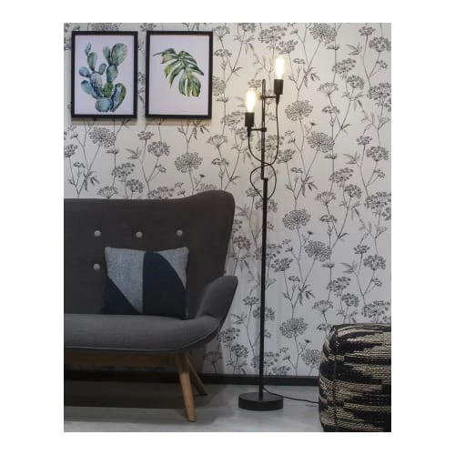 Maisons Du Monde Lampadaires Lampadaire En Tiges De Rotin Et Abat-jour En Lin Blanc H140