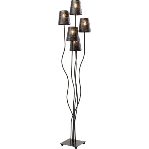Maisons Du Monde Lampadaires Lampadaire En Bois Noir, Gris Et Beige, Abat-jour En Lin H154