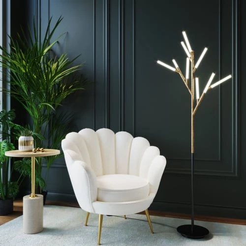 Maisons Du Monde Lampadaires Lampadaire En Métal Doré Et Abat-jour En Coton Bleu Nuit Recyclé H155