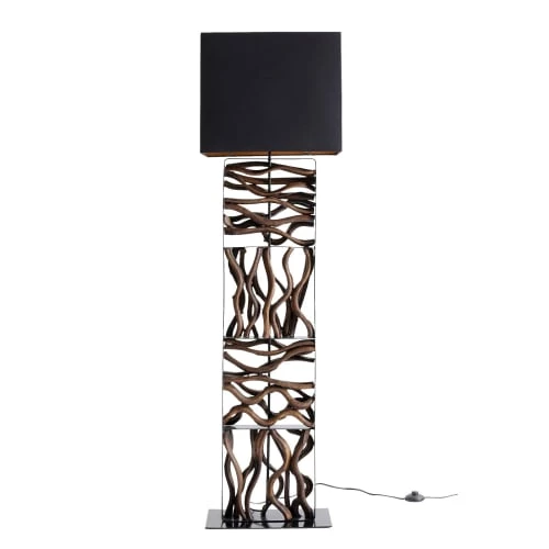 Maisons Du Monde Lampadaires Lampadaire En Bois De Manguier Et Abat-jour En Lin Et Rotin Beige H166
