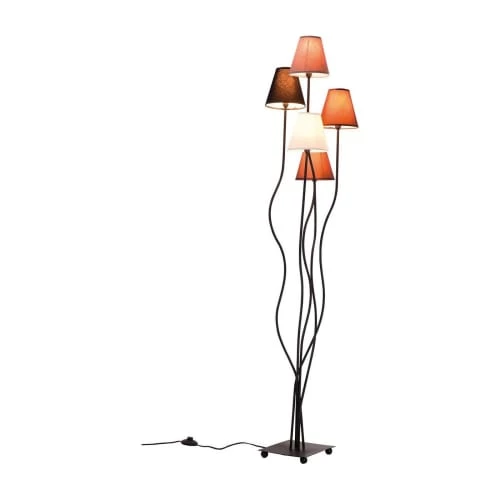 Maisons Du Monde Lampadaires Lampadaire En Bois De Manguier Et Abat-jour En Lin Et Rotin Beige H166