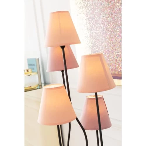 Maisons Du Monde Lampadaires Lampadaire En Bois Noir, Gris Et Beige, Abat-jour En Lin H154