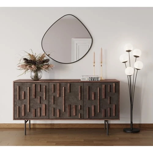 Maisons Du Monde Lampadaires Lampadaire En Bois De Manguier Et Abat-jour En Lin Et Rotin Beige H166