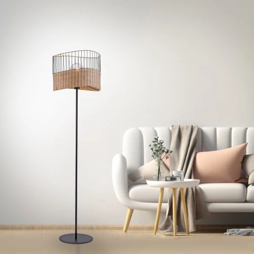 Maisons Du Monde Lampadaires Lampadaire En Bois De Pin Beige Et Abat-jour En Lin Recyclé H149