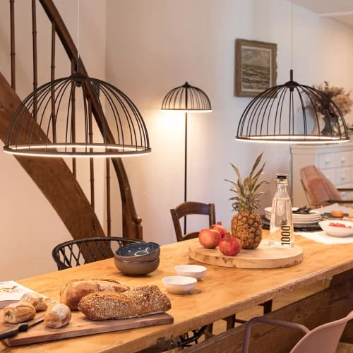 Existe en suspensions D40 cm & D50 cm, et en applique murale. Les plus du produit : Matériau résistant – Effets lumineux – Eclairage LED Caractéristiques : – Douille : Led int – Puissance : 18W – IP : 20 – Matière : metal