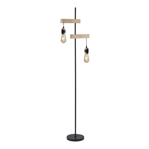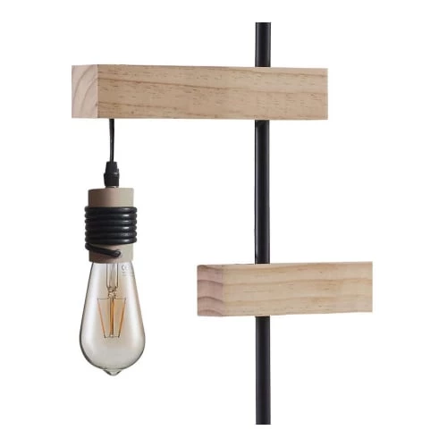 Maisons Du Monde Lampadaires Lampadaire En Bois Noir, Gris Et Beige, Abat-jour En Lin H154