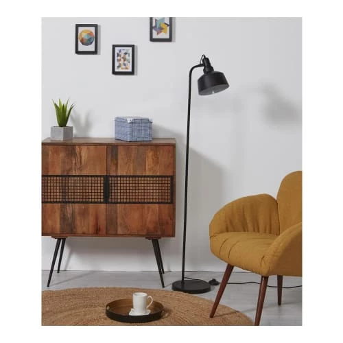 Maisons Du Monde Lampadaires Lampadaire En Bois De Manguier Et Abat-jour En Lin Et Rotin Beige H166