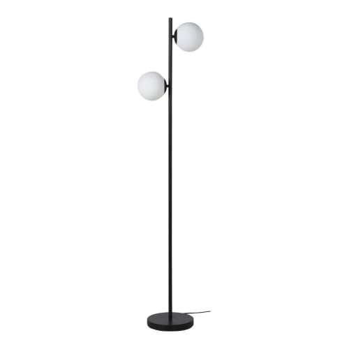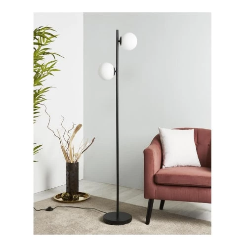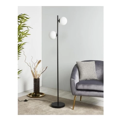 Maisons Du Monde Lampadaires Lampadaire En Bois Noir, Gris Et Beige, Abat-jour En Lin H154