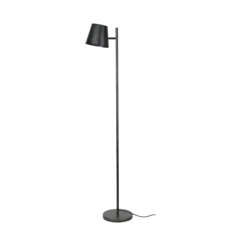 Maisons Du Monde Lampadaires Lampadaire En Bois Noir, Gris Et Beige, Abat-jour En Lin H154