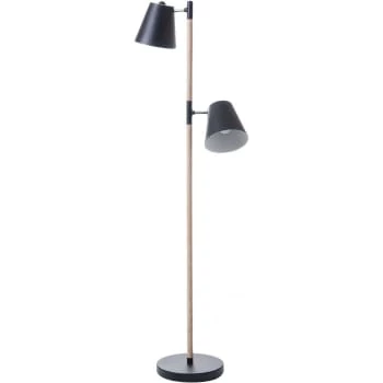 Maisons Du Monde Lampadaires Lampadaire En Bois De Manguier Et Abat-jour En Lin Et Rotin Beige H166