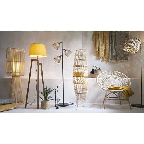 Maisons Du Monde Lampadaires Lampadaire En Tiges De Rotin Et Abat-jour En Lin Blanc H140