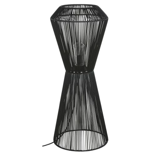 Maisons Du Monde Lampadaires Lampadaire En Métal Doré Et Abat-jour En Coton Bleu Nuit Recyclé H155