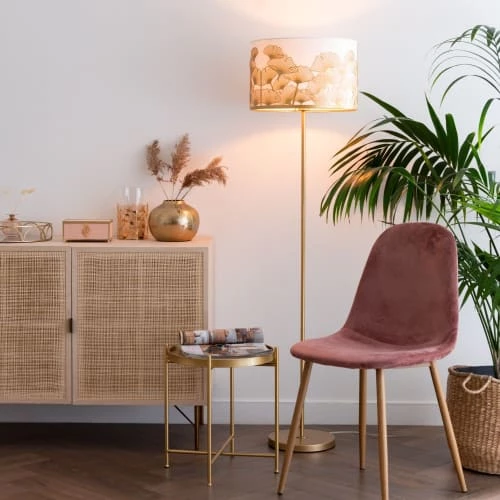 Maisons Du Monde Lampadaires Lampadaire En Bois D’ailante Beige Et Abat-jour En Tissu Blanc H169