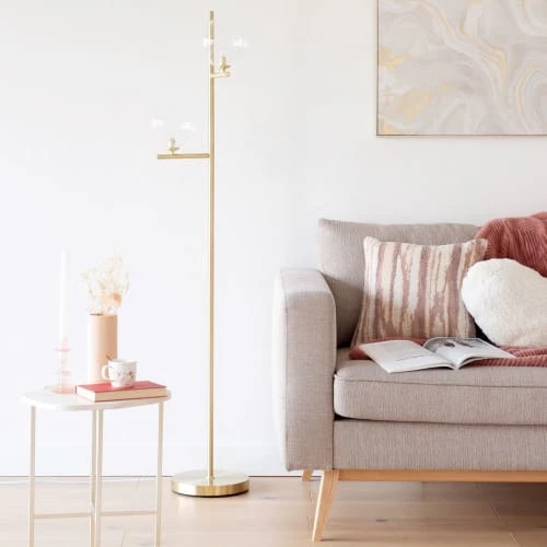 Maisons Du Monde Lampadaires Lampadaire En Marbre Blanc Et Métal Doré, Abat-jour Globe En Verre H153