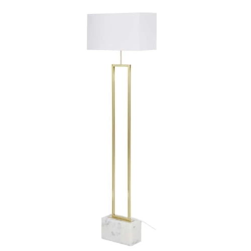 Maisons Du Monde Lampadaires Lampadaire En Bois D’ailante Beige Et Abat-jour En Tissu Blanc H169