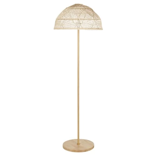 Maisons Du Monde Lampadaires Lampadaire En Bois De Manguier Et Abat-jour En Lin Et Rotin Beige H166