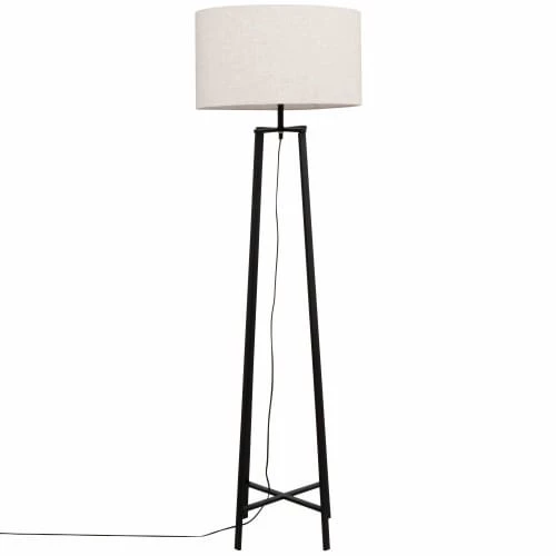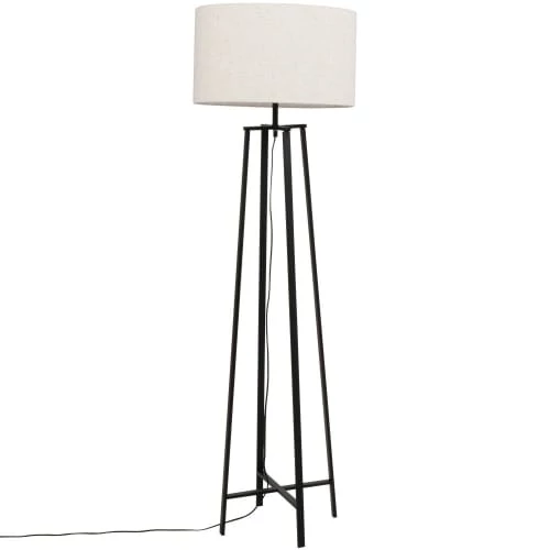 Maisons Du Monde Lampadaires Lampadaire En Bois De Manguier Et Abat-jour En Lin Et Rotin Beige H166