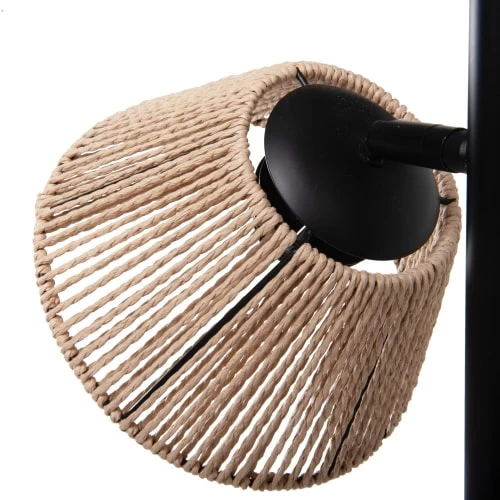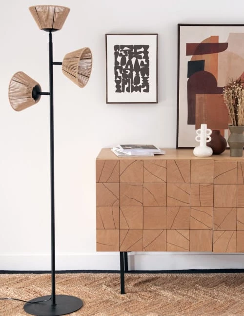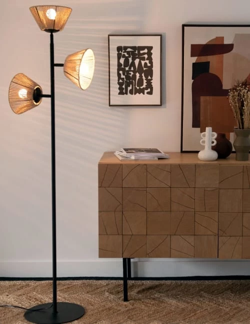 Maisons Du Monde Lampadaires Lampadaire En Bois De Manguier Et Abat-jour En Lin Et Rotin Beige H166