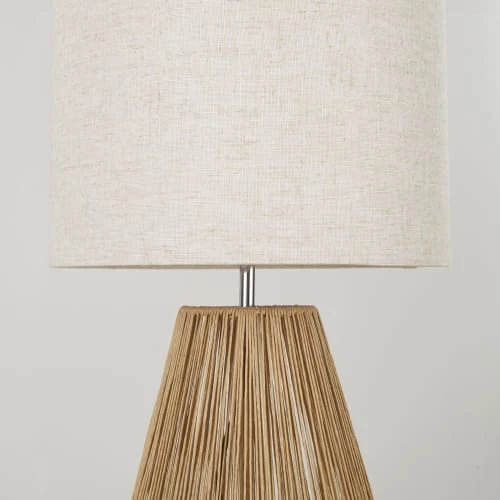 Maisons Du Monde Lampadaires Lampadaire En Bois De Manguier Et Abat-jour En Lin Et Rotin Beige H166