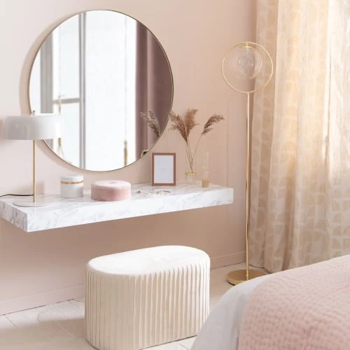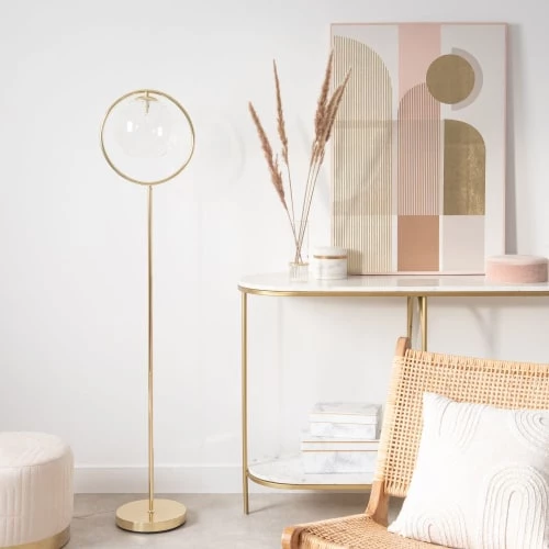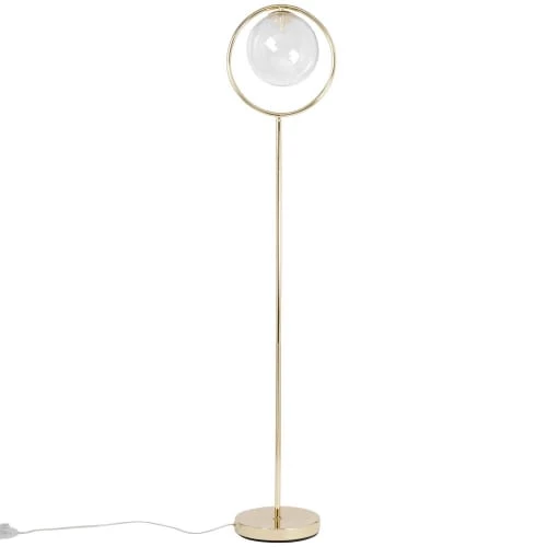 Maisons Du Monde Lampadaires Lampadaire En Métal Doré Et Abat-jour En Coton Bleu Nuit Recyclé H155