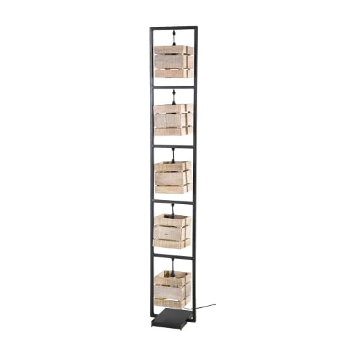 Maisons Du Monde Lampadaires Lampadaire En Bois De Manguier Et Abat-jour En Lin Et Rotin Beige H166