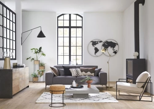 Maisons Du Monde Lampadaires Lampadaire En Bois De Manguier Et Abat-jour En Lin Et Rotin Beige H166