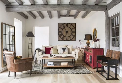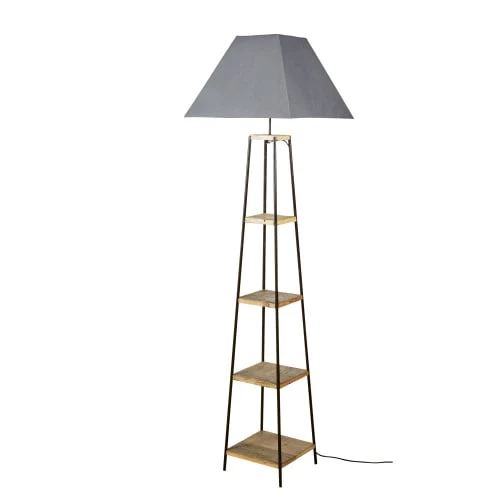 Maisons Du Monde Lampadaires Lampadaire En Bois Noir, Gris Et Beige, Abat-jour En Lin H154