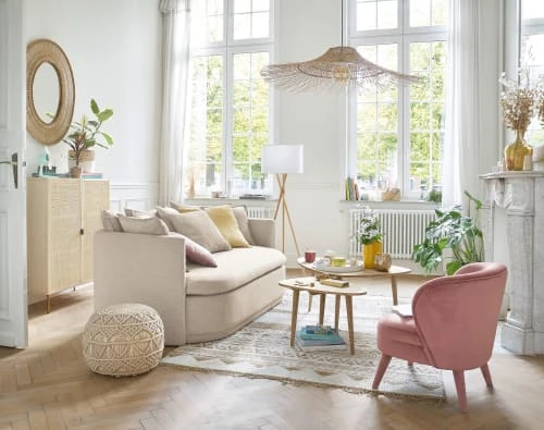 Maisons Du Monde Lampadaires Lampadaire En Métal Doré Et Abat-jour En Coton Bleu Nuit Recyclé H155