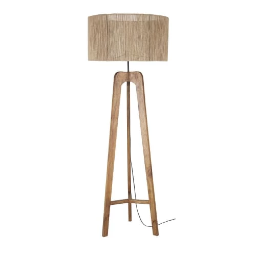 Maisons Du Monde Lampadaires Lampadaire En Bois De Manguier Et Abat-jour En Lin Et Rotin Beige H166