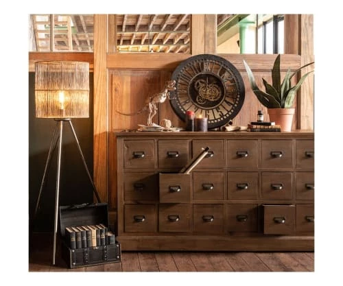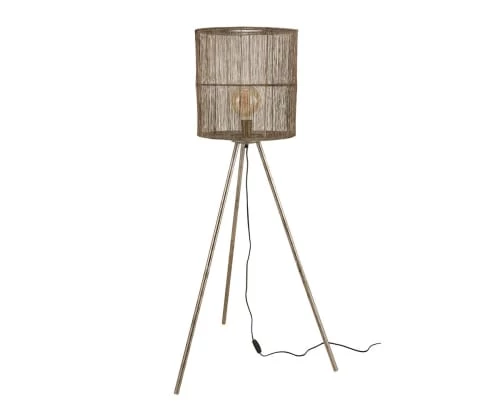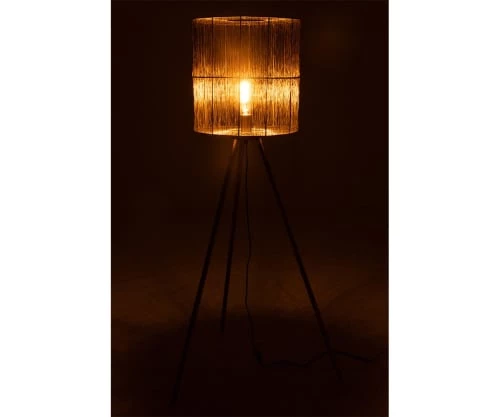 Maisons Du Monde Lampadaires Lampadaire En Bois De Manguier Et Abat-jour En Lin Et Rotin Beige H166