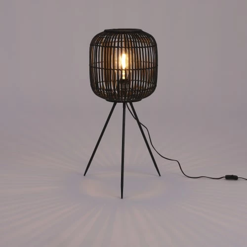 Maisons Du Monde Lampadaires Lampadaire En Tiges De Rotin Et Abat-jour En Lin Blanc H140