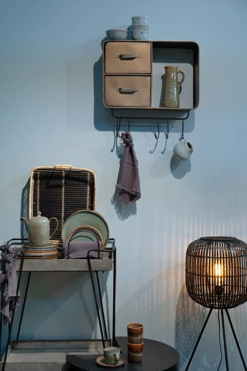 Maisons Du Monde Lampadaires Lampadaire En Métal Doré Et Abat-jour En Coton Bleu Nuit Recyclé H155