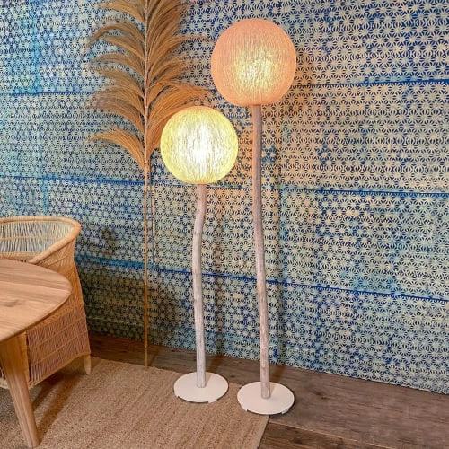Maisons Du Monde Lampadaires Lampadaire En Tiges De Rotin Et Abat-jour En Lin Blanc H140