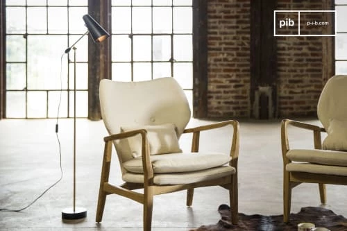 Maisons Du Monde Lampadaires Lampadaire En Bois D’ailante Beige Et Abat-jour En Tissu Blanc H169