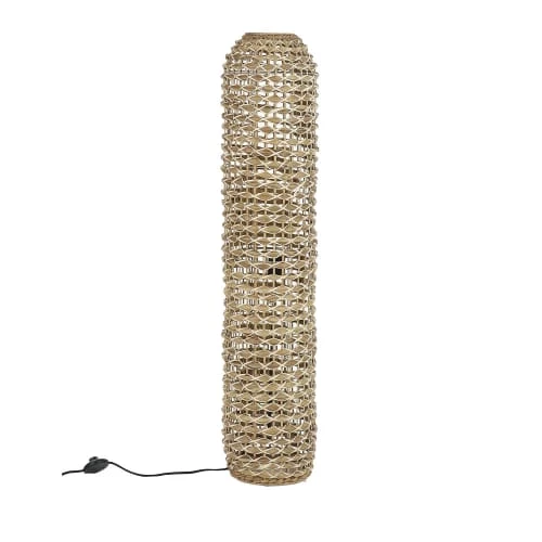 Maisons Du Monde Lampadaires Lampadaire En Bois D’ailante Beige Et Abat-jour En Tissu Blanc H169