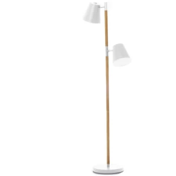 Maisons Du Monde Lampadaires Lampadaire En Bois De Manguier Et Abat-jour En Lin Et Rotin Beige H166